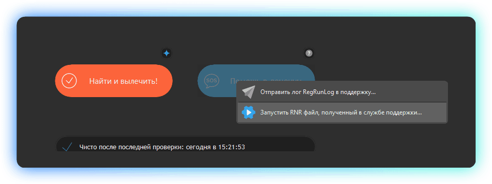 По почте написали нажмите "помощь в лечении" и выполнить rnr файл. Тут нет таких кнопок. Спасательный круг отправляет логи, через кнопку удалить он просто предлагает удалить файл. Куда жать вообще не понятно